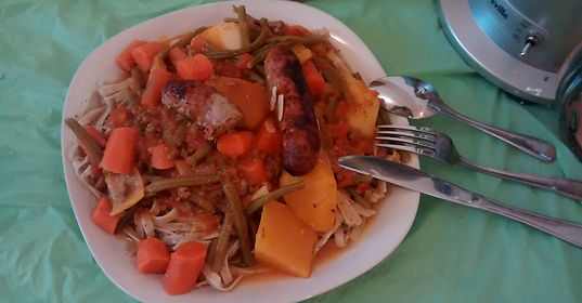 Fettuccine, Vegetables and Pork Sausages (2 servings)...