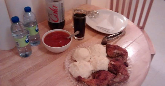 Baked Chicken wings, served with Couscous and steamed Plantains...